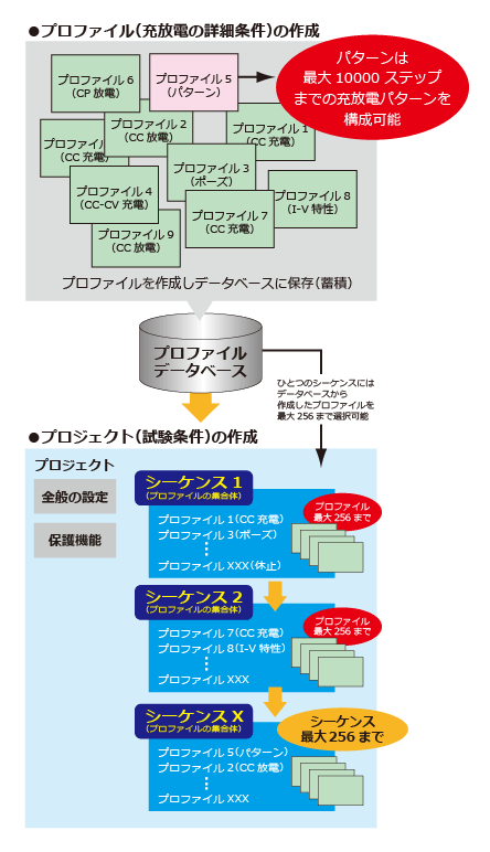 100,000 ステップのパターン充放電機能
